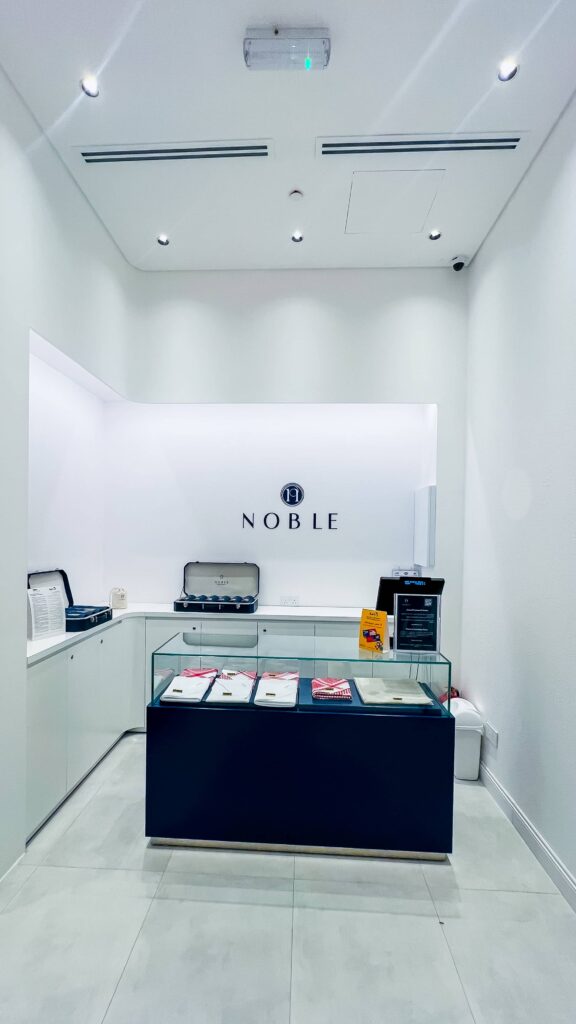Every detail—from lighting concepts to material selection—was carefully implemented with precision craftsmanship and flawless execution to highlight the products and elevate the customer experience, reflecting the refined identity of Noble Store.